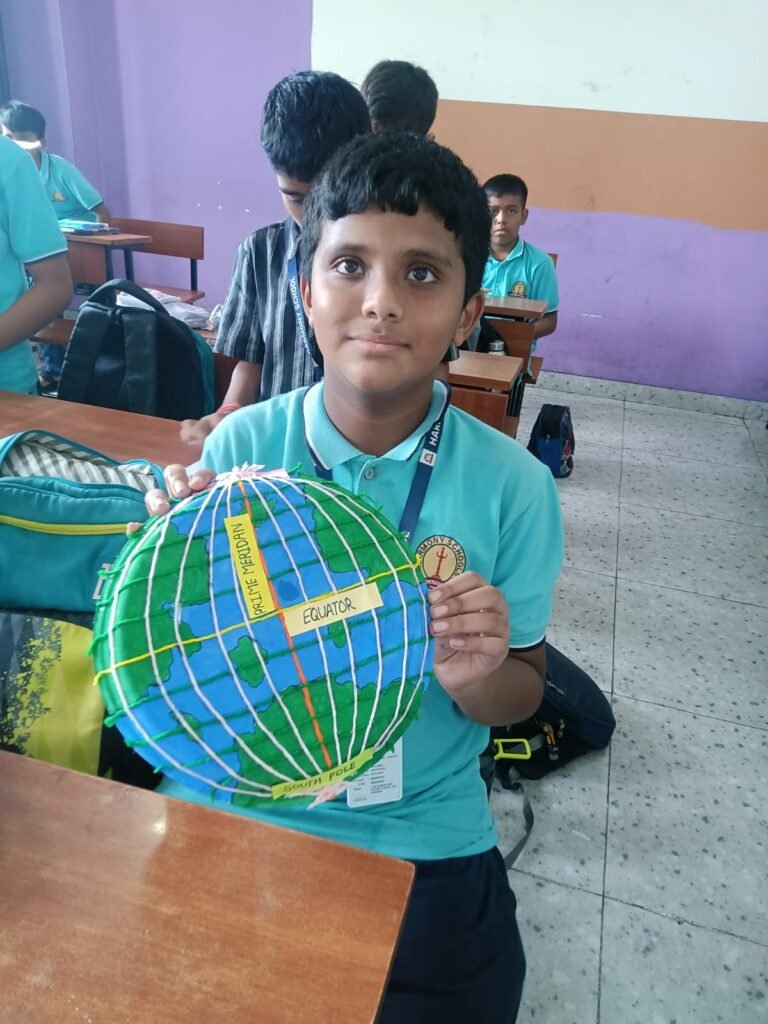 Demonstrating Equator, Prime Meridian, North Pole and South Pole.